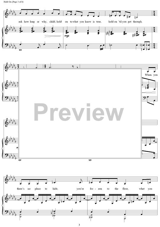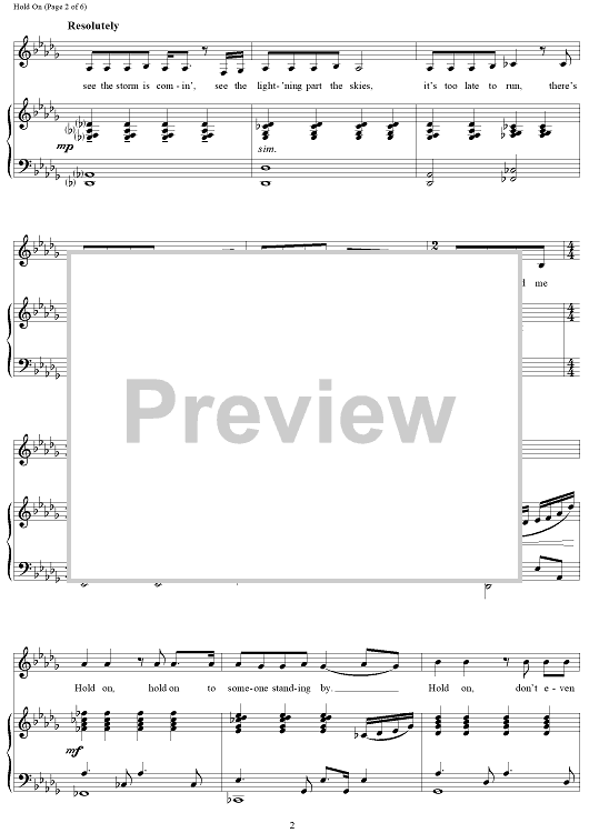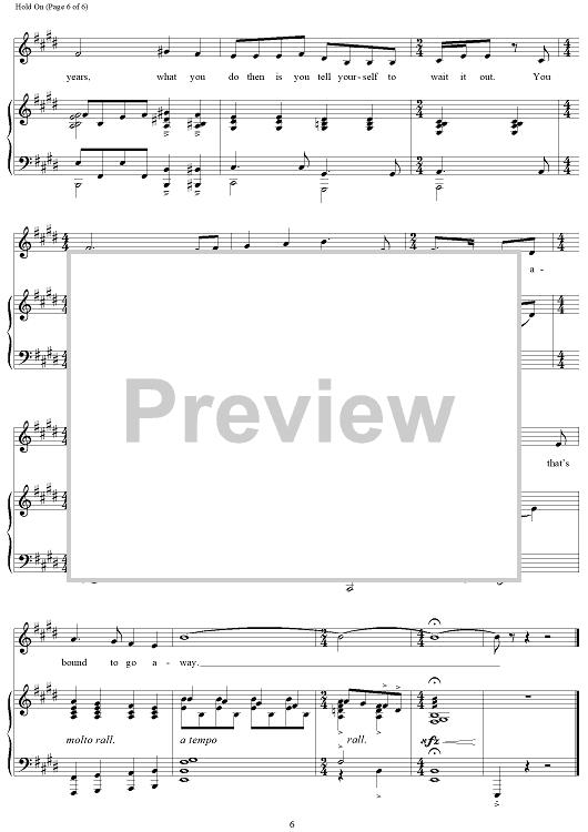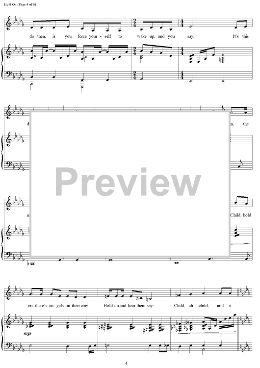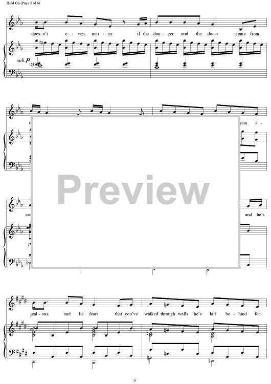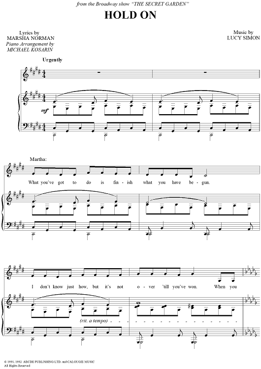 Digital Sheet Music for Hold On by Lucy Simon, Marsha Norman scored for Piano/Vocal; id:120434