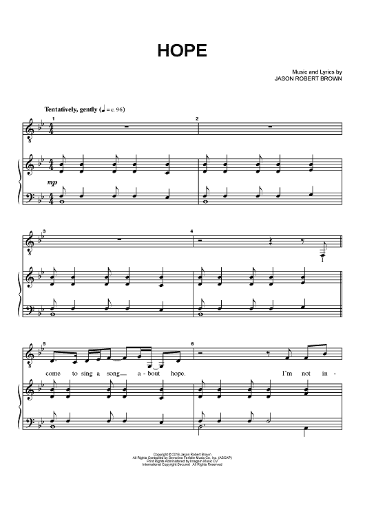 Digital Sheet Music for Hope by Jason Robert Brown scored for Piano/Vocal/Chords; id:466613