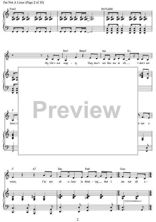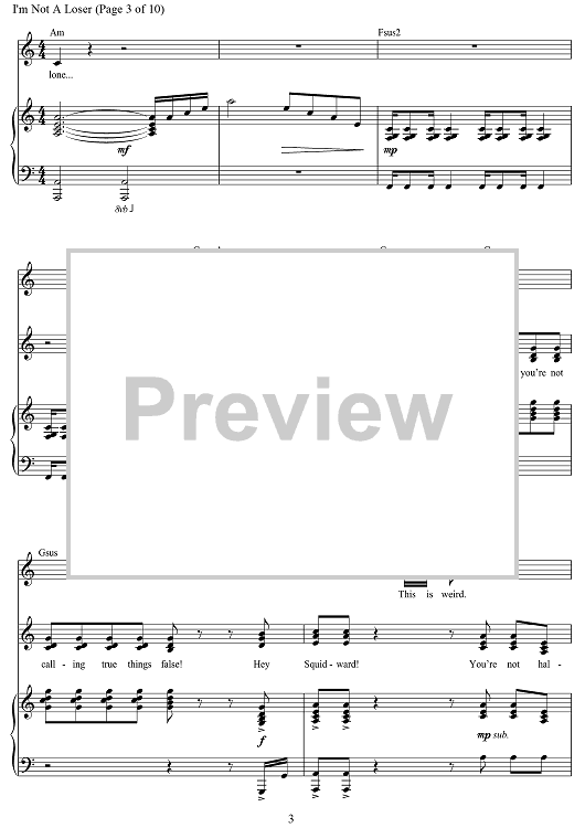 Digital Sheet Music for I'm Not a Loser - from SpongeBob SquarePants: The Broadway Musical by John Flansburgh, John Linnell scored for Piano/Vocal/Chords; id:504794
