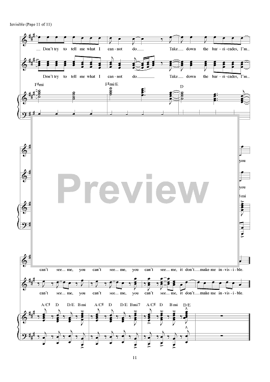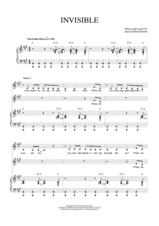 Digital Sheet Music for Invisible by Jason Robert Brown scored for Piano/Vocal/Chords; id:466614