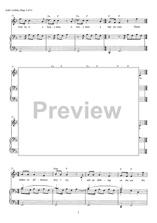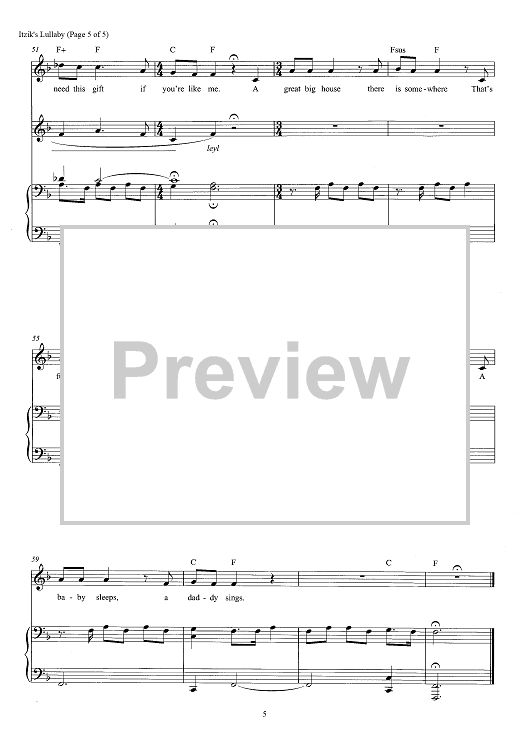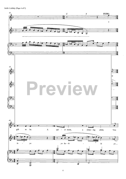 Digital Sheet Music for Itzik's Lullaby by David Yazbek scored for Piano/Vocal/Chords; id:466600