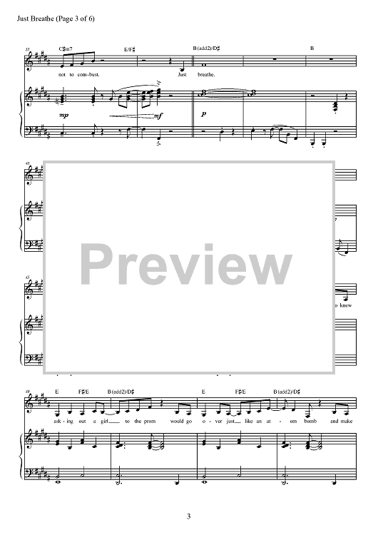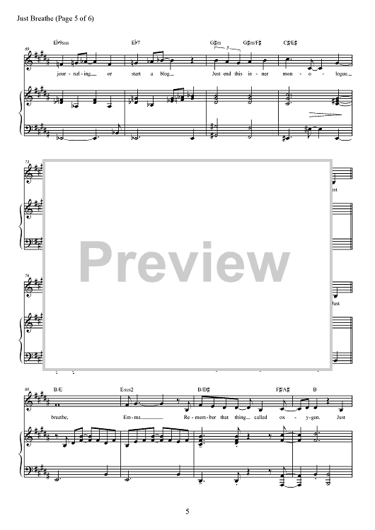 Digital Sheet Music for Just Breathe - from The Prom by Chad Beguelin, Matthew Sklar scored for Piano/Vocal/Chords; id:467530