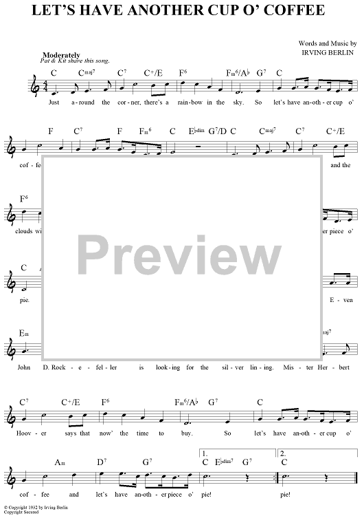 Digital Sheet Music for Let's Have Another Cup O' Coffee by Irving Berlin scored for Lead Sheet; id:442533