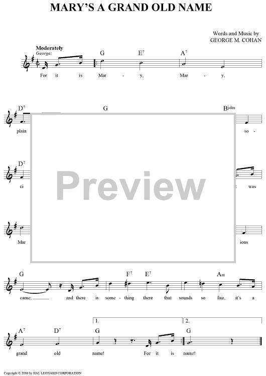 Digital Sheet Music for Mary's A Grand Old Name by George M Cohan scored for Lead Sheet; id:444373