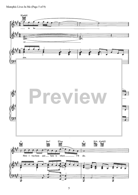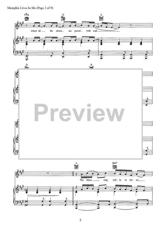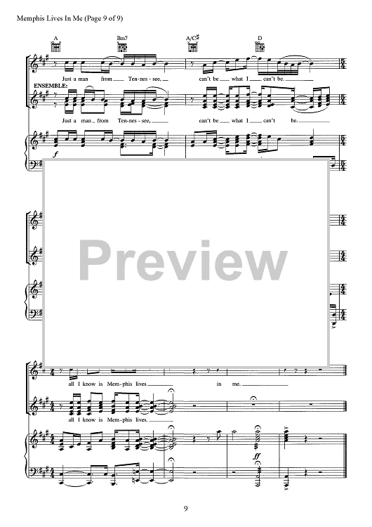 Digital Sheet Music for Memphis Lives In Me by David Bryan, Joe DiPietro scored for Piano/Vocal/Chords; id:467493