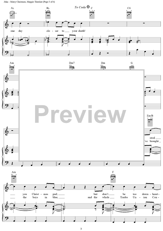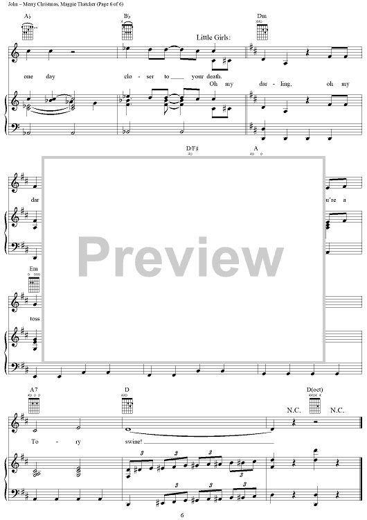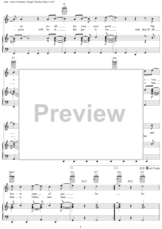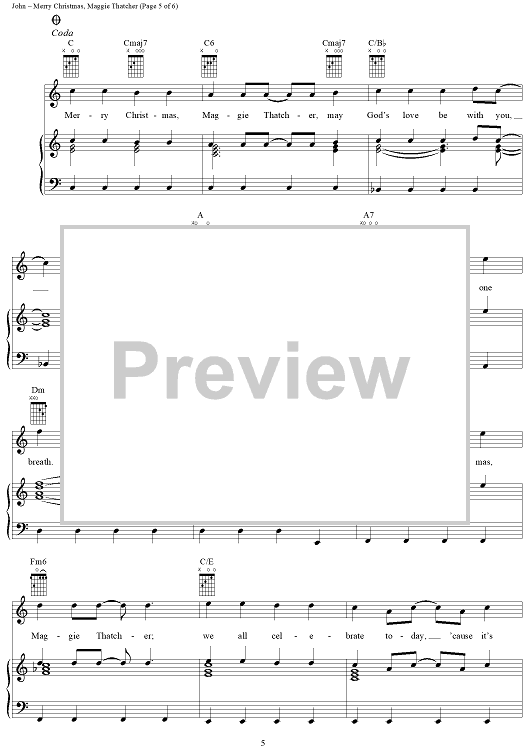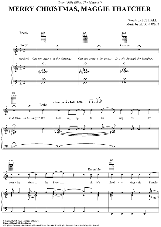 Digital Sheet Music for Merry Christmas, Maggie Thatcher by Elton John, Lee Hall scored for Piano/Vocal/Chords; id:366962