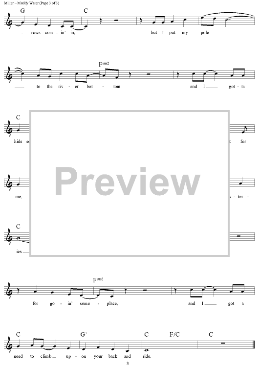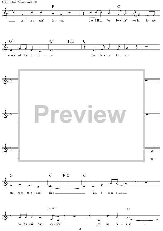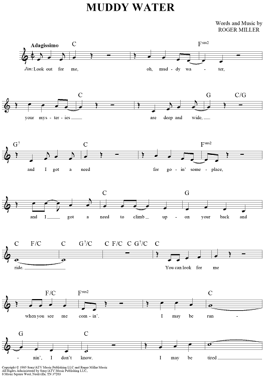 Digital Sheet Music for Muddy Water by Roger Miller scored for Lead Sheet; id:441739