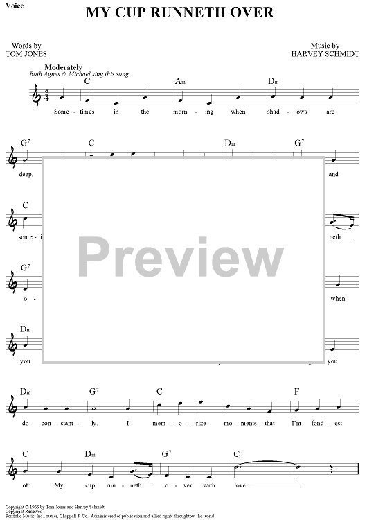 "My Cup Runneth Over" Sheet Music by Harvey Schmidt