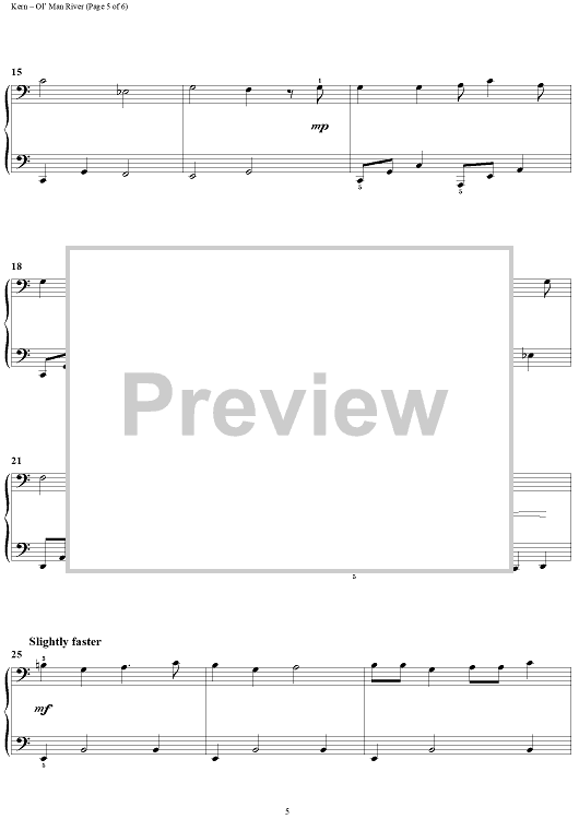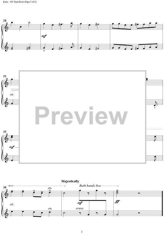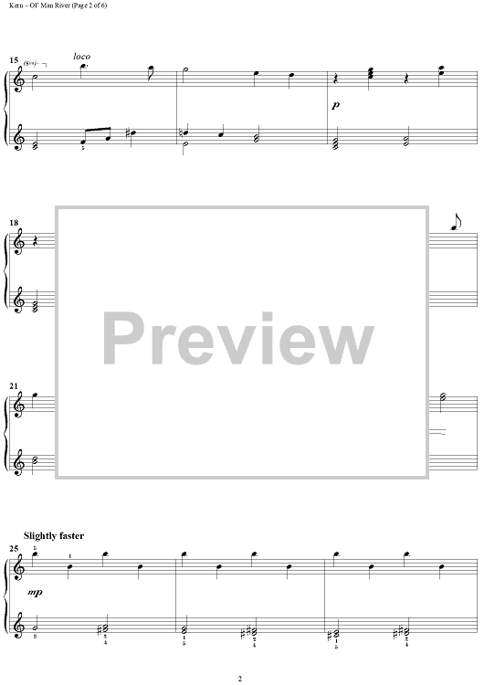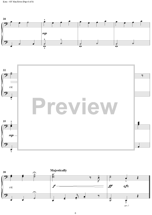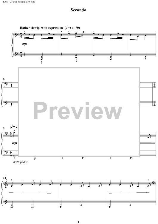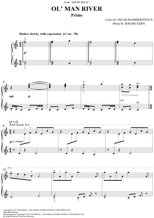 Digital Sheet Music for Ol' Man River by Jerome Kern, Oscar Hammerstein II scored for 1 Piano, 4 Hands; id:394741