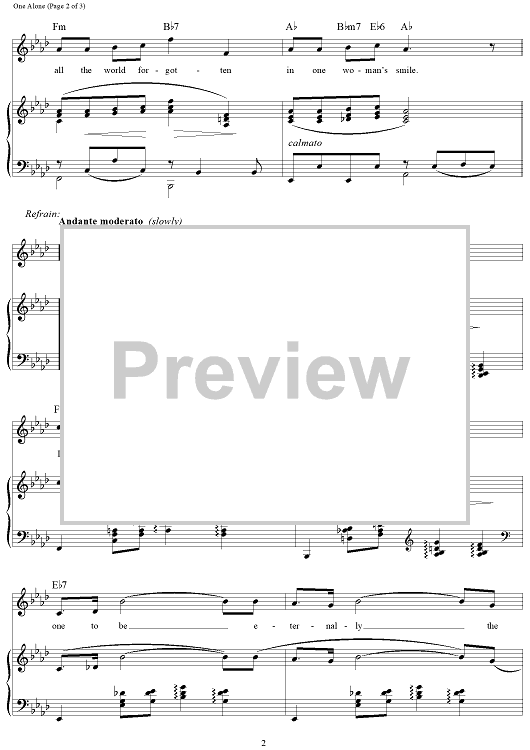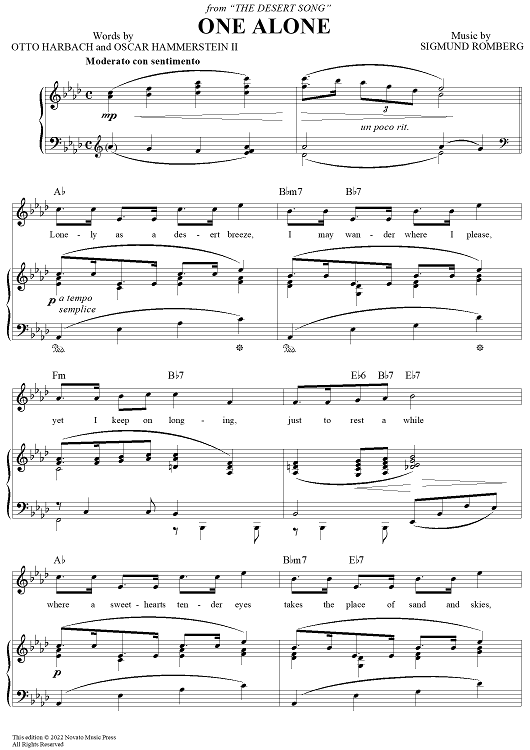 Digital Sheet Music for One Alone by Sigmund Romberg, Oscar Hammerstein II, Otto Harbach scored for Piano/Vocal/Chords; id:117909