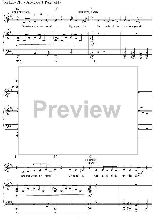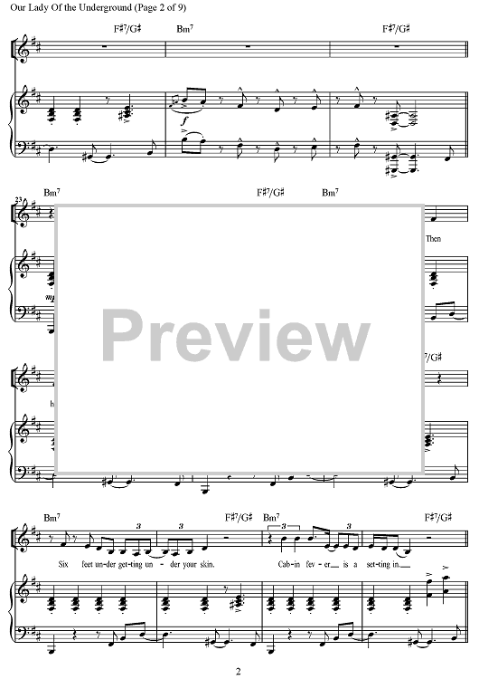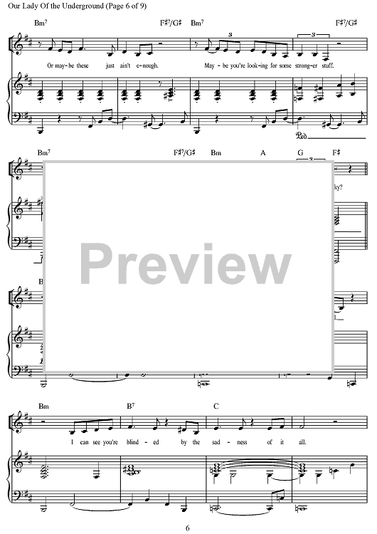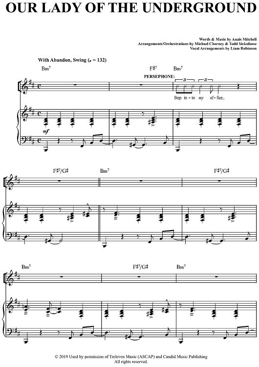 Digital Sheet Music for Our Lady Of The Underground by Anaïs Mitchell, Michael Chorney, Todd Sickafoose, Liam Robinson scored for Piano/Vocal/Chords; id:497159