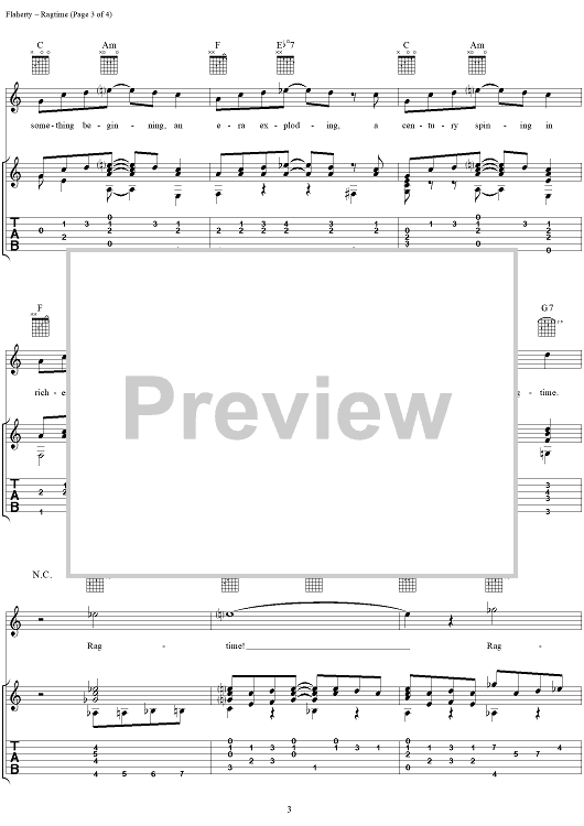 Digital Sheet Music for Ragtime by Stephen Flaherty, Lynn Ahrens, Jerry Silverman scored for Guitar Tab/Vocal; id:120250