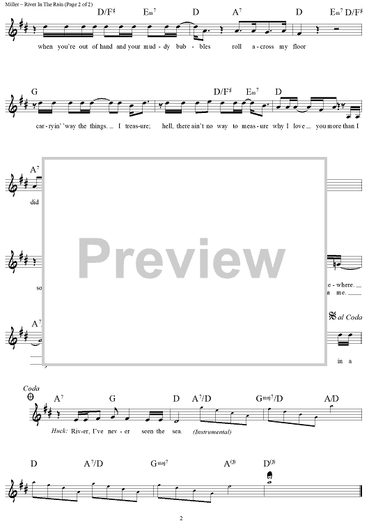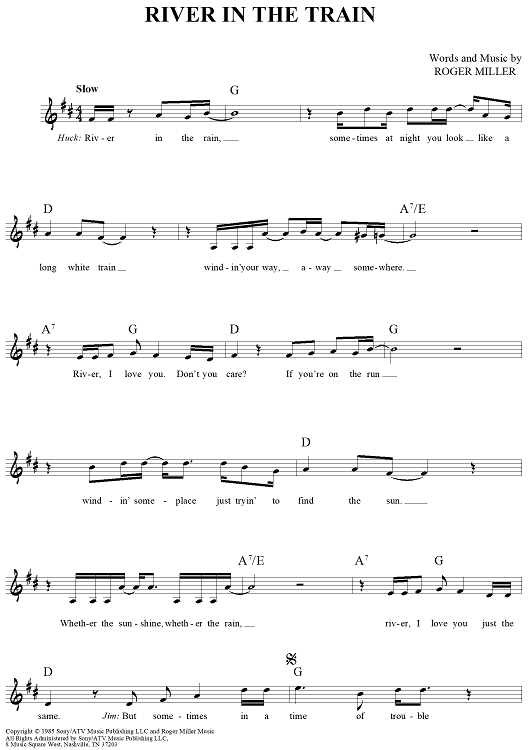 Digital Sheet Music for River In The Rain by Roger Miller scored for Lead Sheet; id:441535