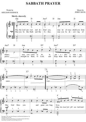 "Sabbath Prayer" Sheet Music by Jerry Bock