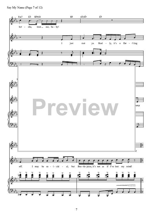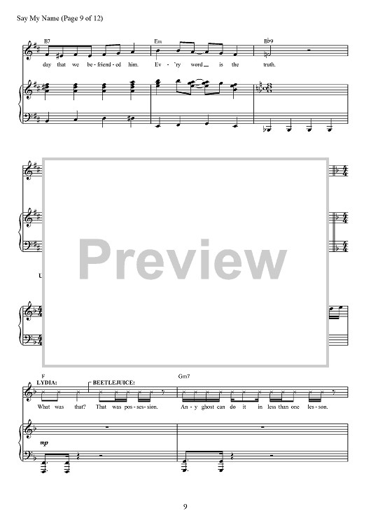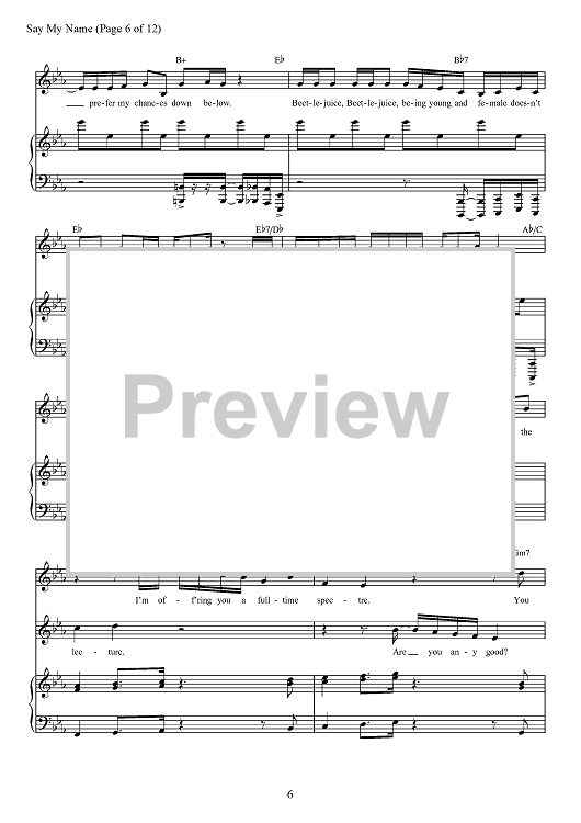 Digital Sheet Music for Say My Name - from Beetlejuice - The Musical by Eddie Perfect scored for Piano/Vocal/Chords; id:467844