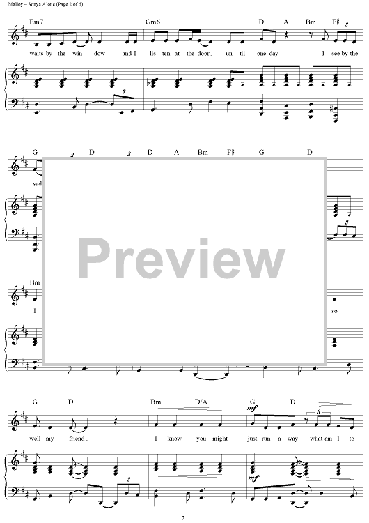 Digital Sheet Music for Sonya Alone - from Natasha, Pierre & The Great Comet of 1812 by Dave Malloy scored for Piano/Vocal/Chords; id:464806