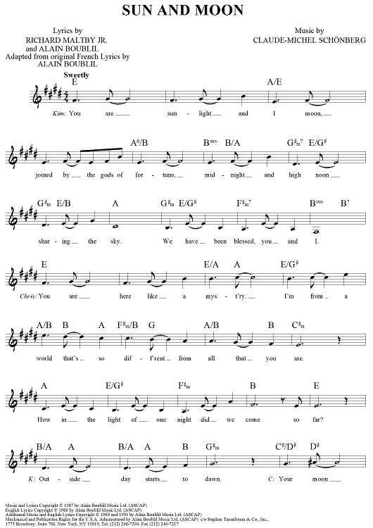 Digital Sheet Music for Sun and Moon by Claude-Michel Schonberg, Alain Boublil, Richard Maltby Jr. scored for Lead Sheet; id:447295