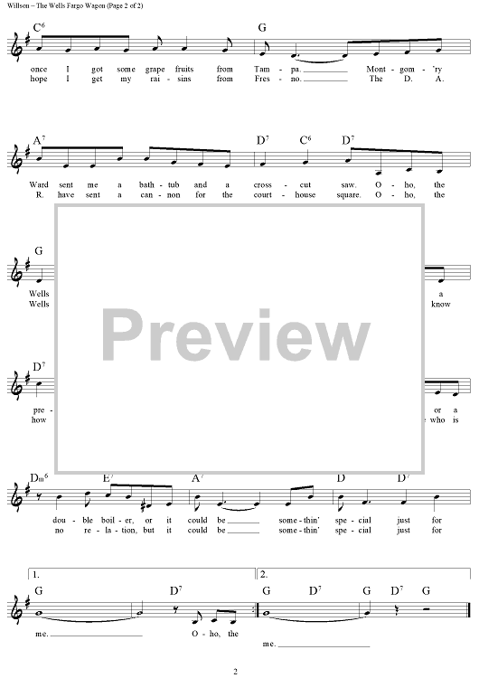 Digital Sheet Music for The Wells Fargo Wagon by Meredith Willson scored for Lead Sheet; id:447314