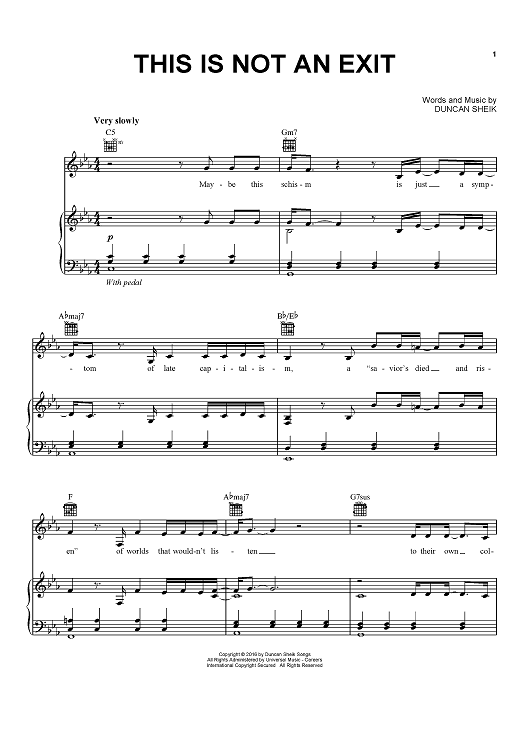"This Is Not An Exit" Sheet Music by Duncan Sheik