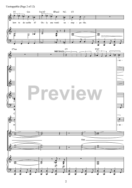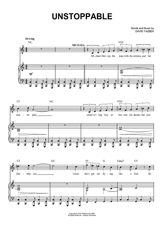 Digital Sheet Music for Unstoppable by David Yazbek scored for Piano/Vocal/Chords; id:467892
