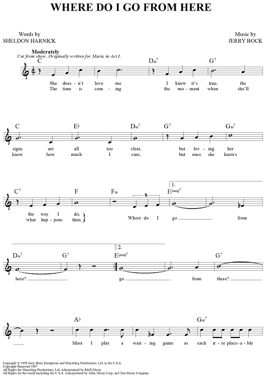 Digital Sheet Music for Where Do I Go From Here by Jerry Bock, Sheldon Harnick scored for Lead Sheet; id:444274