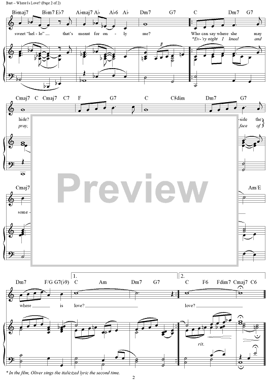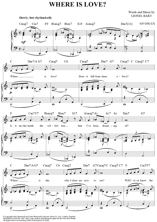 Digital Sheet Music for Where Is Love? by Lionel Bart scored for Piano/Vocal/Chords; id:390873