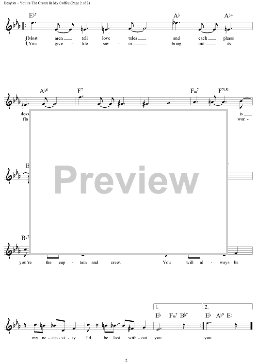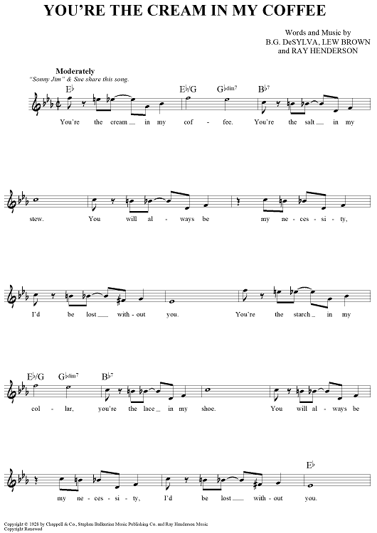Digital Sheet Music for You're the Cream in My Coffee by Ray Henderson, Lew Brown, Buddy DeSylva scored for Lead Sheet; id:446565