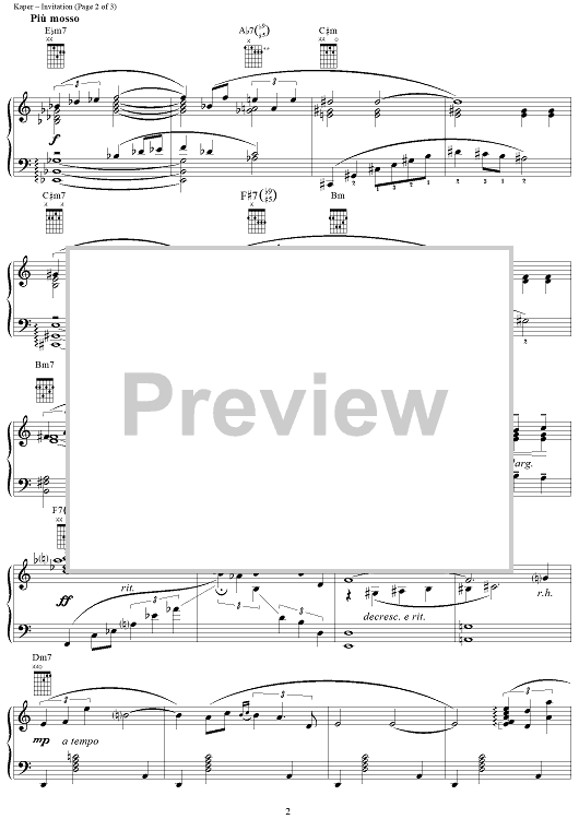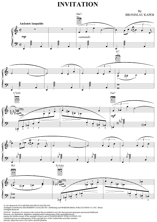 Digital Sheet Music for Invitation by Bronislau Kaper scored for Piano Solo; id:249959