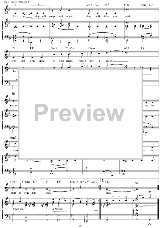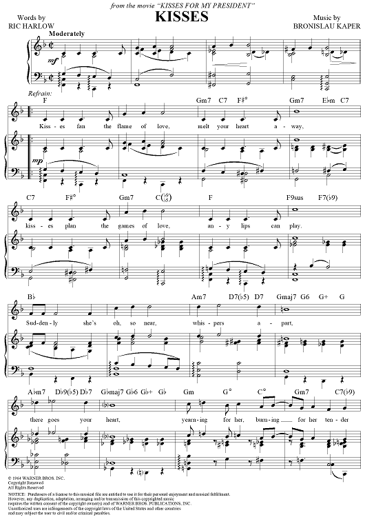 Digital Sheet Music for Kisses by Bronislau Kaper, Ric Harlow scored for Piano/Vocal/Chords; id:249792