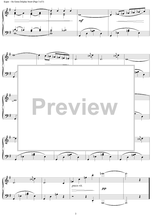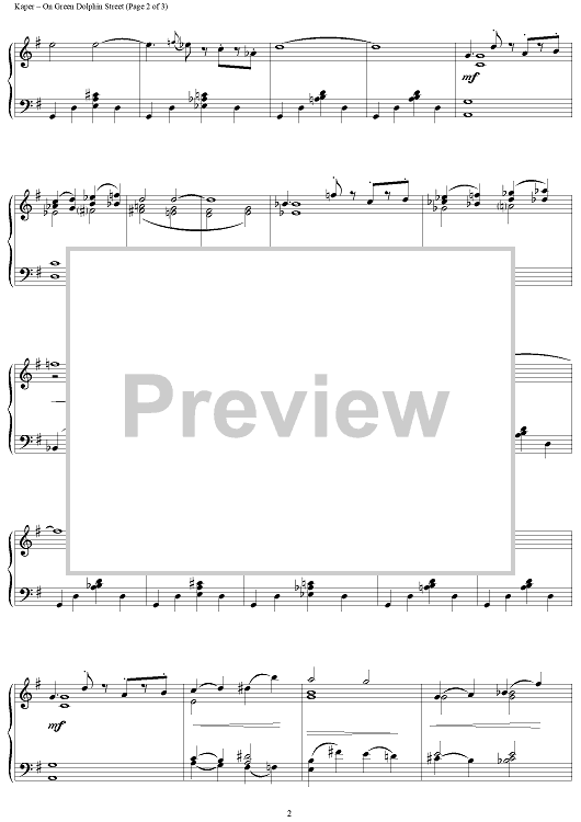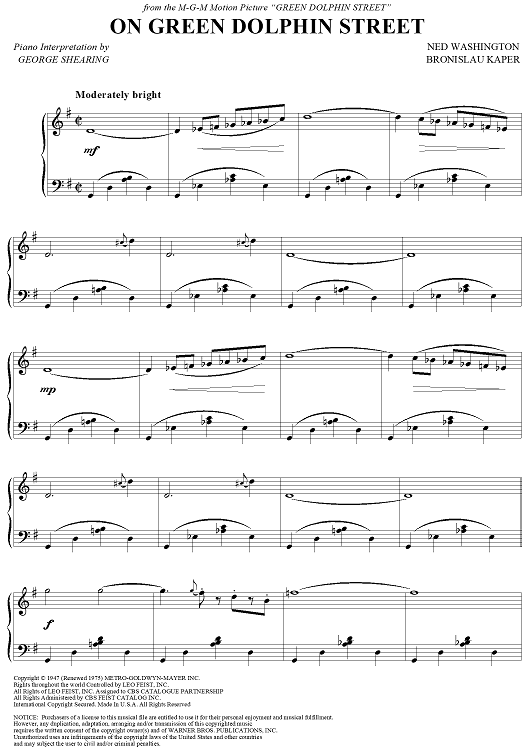 Digital Sheet Music for On Green Dolphin Street by George Shearing, Ned Washington, Bronislau Kaper, Jimmy Dorsey scored for Piano Solo; id:115801