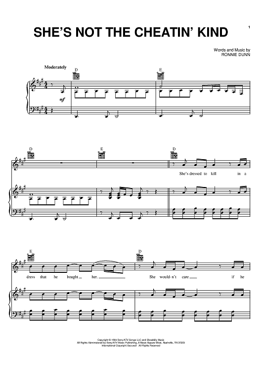 Digital Sheet Music for She's Not The Cheatin' Kind by Ronnie Dunn, Brooks & Dunn scored for Piano/Vocal/Chords; id:385815