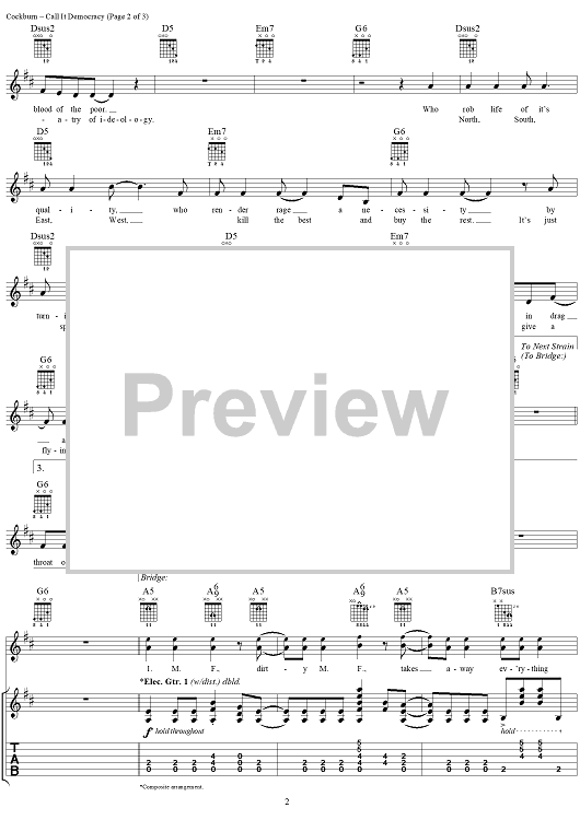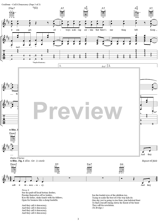 Digital Sheet Music for Call It Democracy by Bruce Cockburn scored for Guitar Tab/Vocal; id:292082