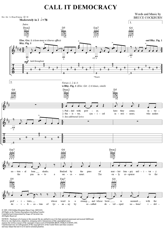 "Call It Democracy" Sheet Music by Bruce Cockburn