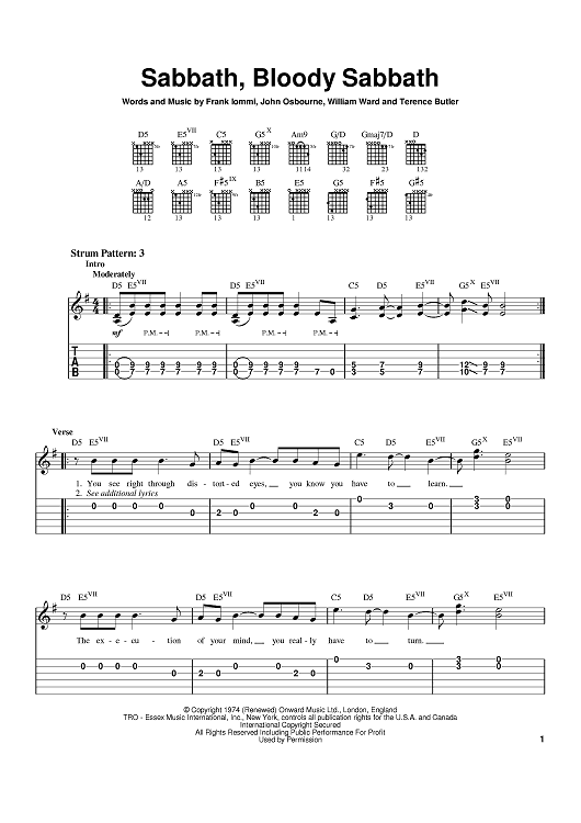 Digital Sheet Music for Sabbath, Bloody Sabbath by Bruce Dickinson, Bill Ward, Black Sabbath, Tony Iommi, Ozzy Osbourne scored for Easy Guitar Tab; id:373190