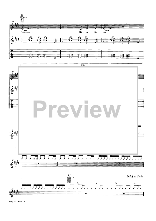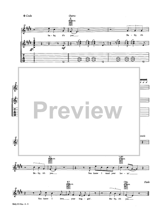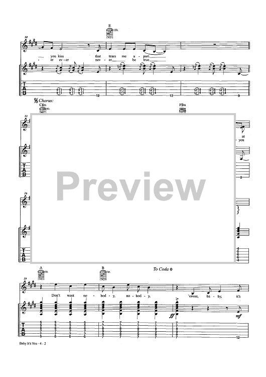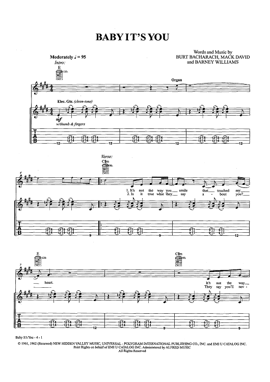 Digital Sheet Music for Baby It's You by Burt Bacharach, Mack David, Barney Williams scored for Easy Guitar Tab/Vocal/Chords; id:457178