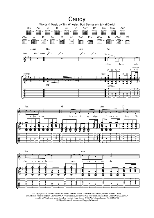 Digital Sheet Music for Candy by Hal David, Burt Bacharach, Ash, Tim Wheeler scored for Guitar Tab; id:377797