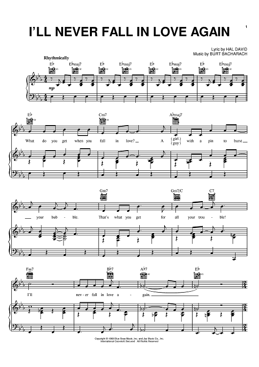 "I'll Never Fall In Love Again" Sheet Music by Burt Bacharach