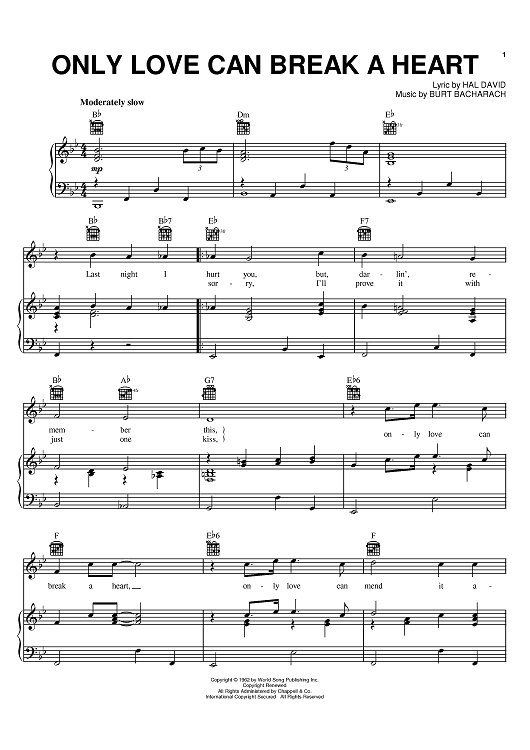 "Only Love Can Break A Heart" Sheet Music by Burt Bacharach
