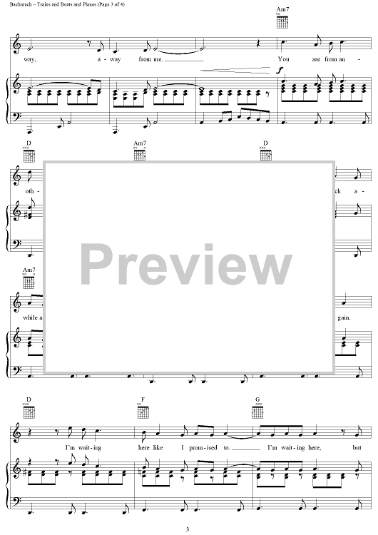 "Trains and Boats and Planes" Sheet Music by Burt Bacharach