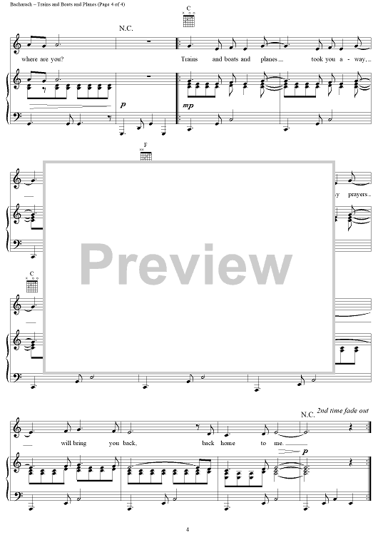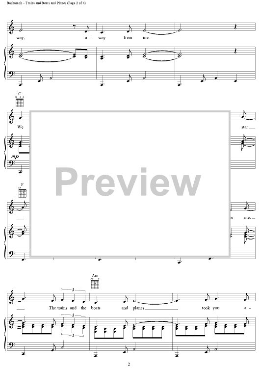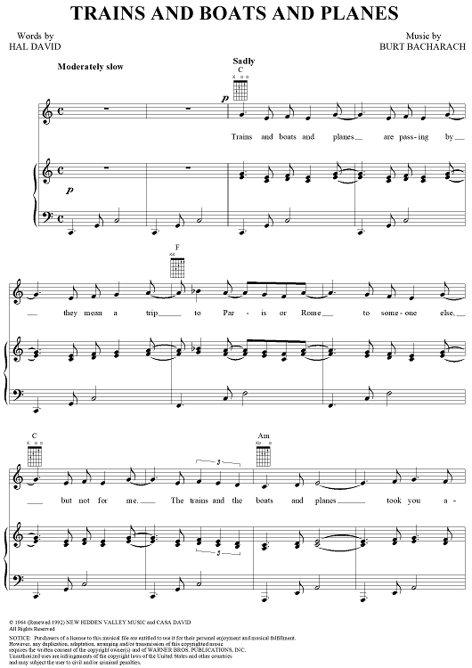 Digital Sheet Music for Trains and Boats and Planes by Hal David, Burt Bacharach, Dionne Warwick scored for Piano/Vocal/Chords; id:124151