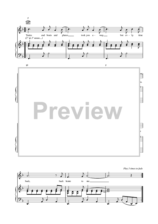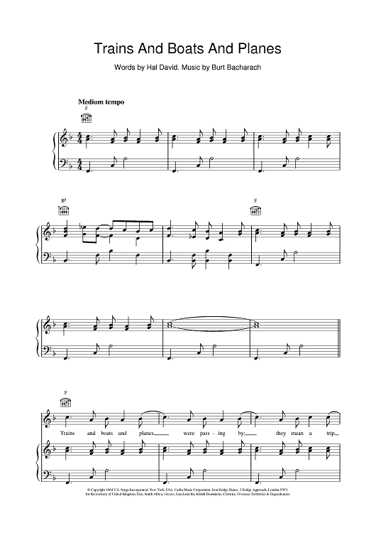 Digital Sheet Music for Trains And Boats And Planes by Hal David, Burt Bacharach scored for Piano/Vocal/Chords; id:379619