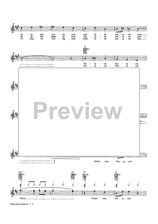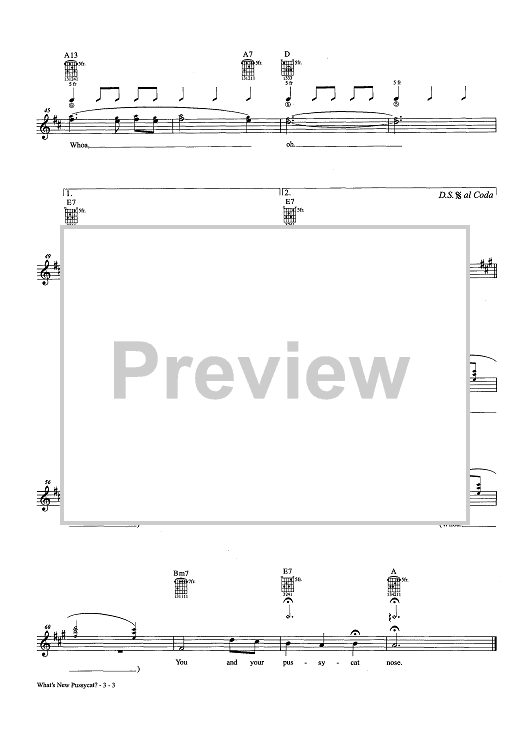 Digital Sheet Music for What's New Pussycat? by Hal David, Burt Bacharach scored for Lead Sheet; id:457910