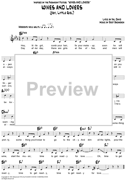 Digital Sheet Music for Wives and Lovers (Hey, Little Girl) by Hal David, Burt Bacharach scored for Lead Sheet; id:291584