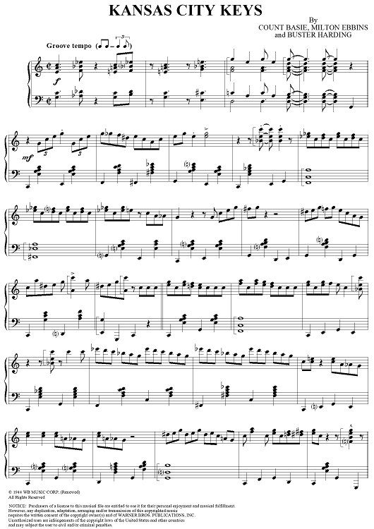 Digital Sheet Music for Kansas City Keys by Count Basie, Milton Ebbins, Buster Harding scored for Piano Solo; id:289153