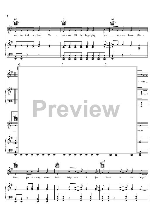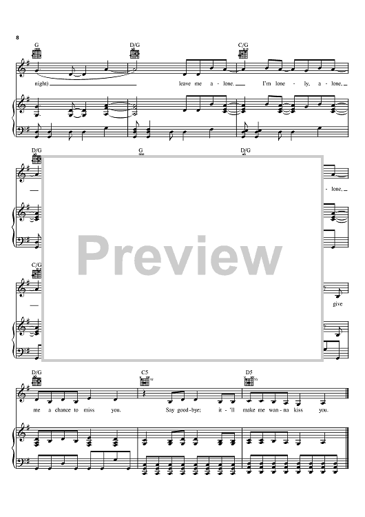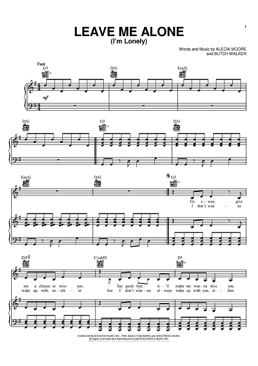 Digital Sheet Music for Leave Me Alone (I'm Lonely) by Butch Walker, Pink scored for Piano/Vocal/Chords; id:394166