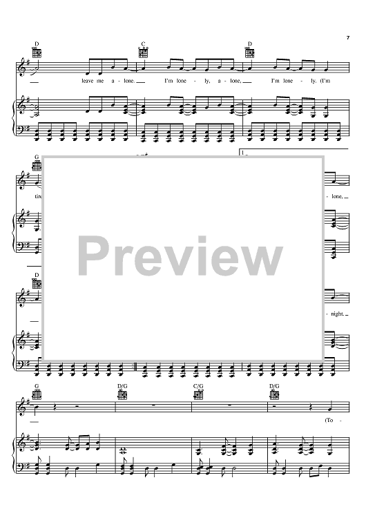 "Leave Me Alone (I'm Lonely)" Sheet Music by P!nk