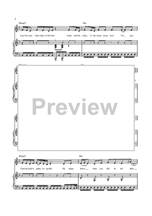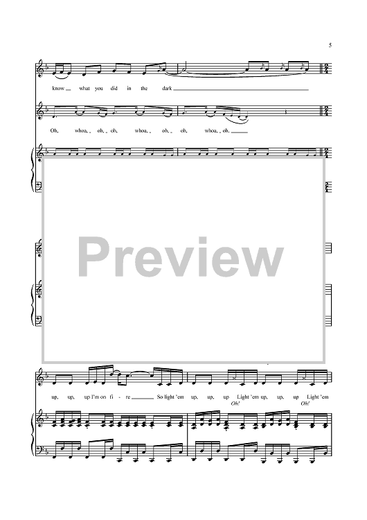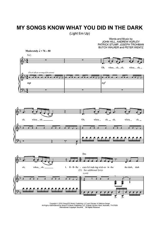 Digital Sheet Music for My Songs Know What You Did In the Dark (Light Em Up) by Butch Walker, Patrick Stump, Peter Wentz, Andrew John Hurley, Joseph Trohman, Fall Out Boy, John Hill scored for Piano/Vocal/Chords; id:434910