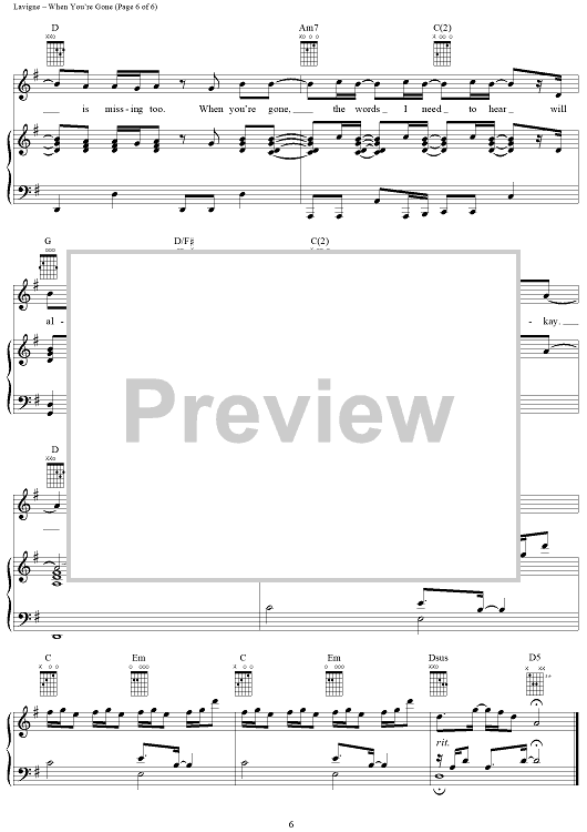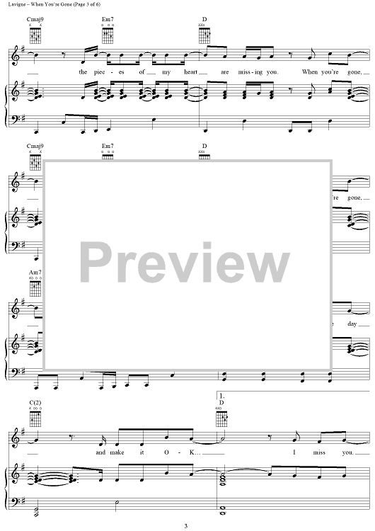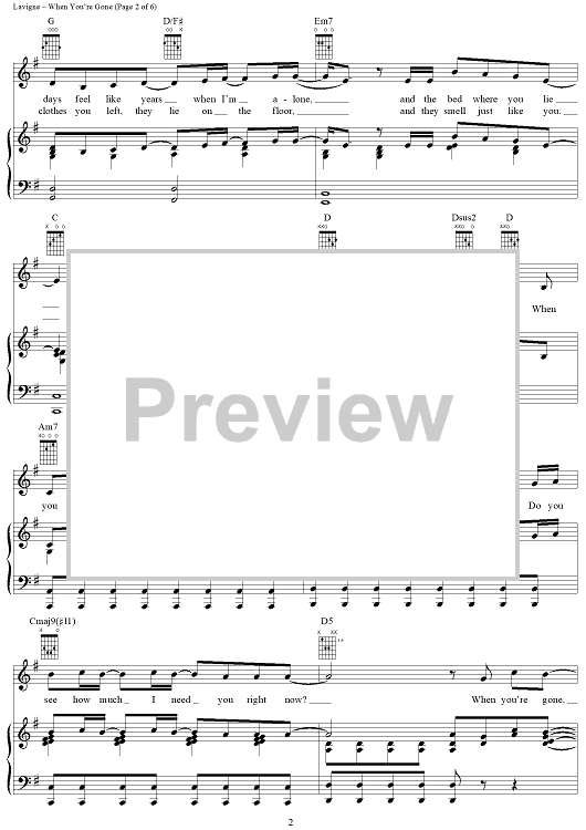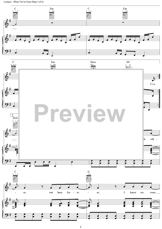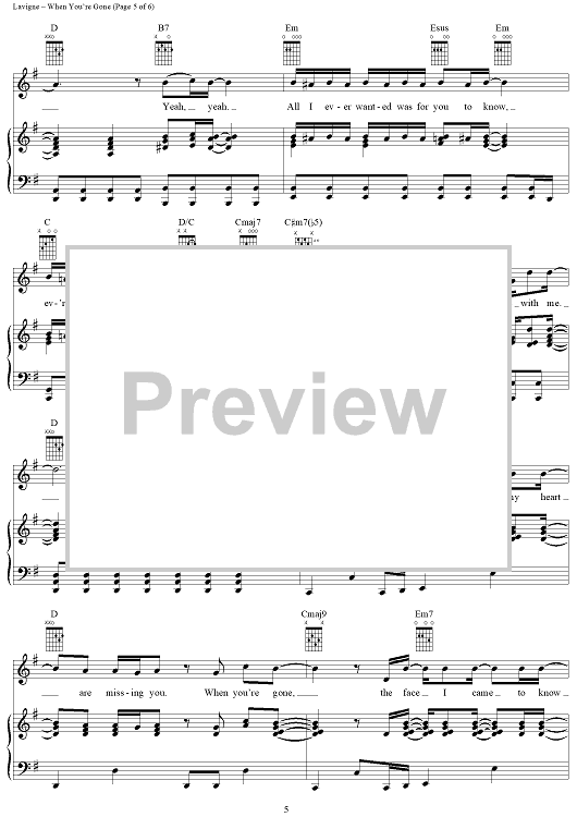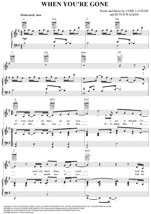Digital Sheet Music for When You're Gone by Avril Lavigne, Butch Walker scored for Piano/Vocal/Chords; id:365285