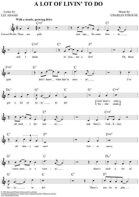 Digital Sheet Music for A Lot Of Livin' To Do by Charles Strouse, Lee Adams scored for Lead Sheet; id:441536