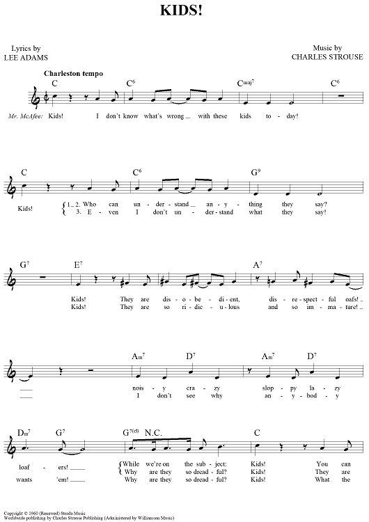 Digital Sheet Music for Kids! by Charles Strouse, Lee Adams scored for Lead Sheet; id:441812